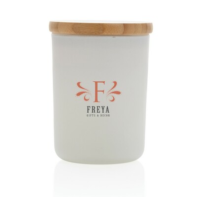 Świeczka zapachowa w szklanym słoiku z bambusowym wieczkiem, zapach jaśminowy, ślad węglowy produktu: 0,87 kg CO2
