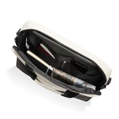 Torba na laptopa 15.6”, kieszenie i uchwyty na akcesoria do pisania wewnątrz, wykonana w 100% z poliestru pochodzącego z recyklingu, posiada znacznik AWARE™, który gwarantuje, że wykorzystane materiały pochodzą z recyklingu, 2% wpływów z każdego sprzedanego produktu z kolekcji Impact jest przekazywane na rzecz Water.org, ślad węglowy produktu: 2,1 kg CO2