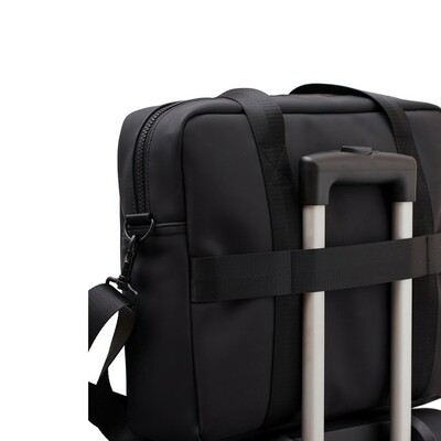 Torba na laptopa, wewnątrz kieszenie na drobiazgi, pasek do zamocowania na walizce, wykonana z wodoodpornego materiału, regulowany pasek na ramię