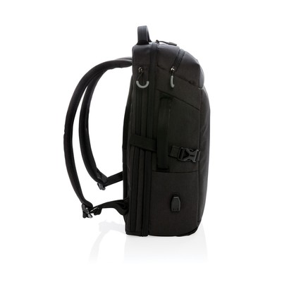 Plecak na laptopa 17″, wyściełana przegroda na laptopa, kieszeń z boku, kieszeń szybkiego dostępu na górze, kieszenie z ochroną RFID, wyjście USB do ładowania (power-bank nie jest dołączony), wykonany z RPET, posiada wbudowany znacznik AWARE™, który potwierdza wykorzystanie materiałów z recyklingu, dzięki wykorzystaniu materiałów z recyklingu przy produkcji tej torby udało się zaoszczędzić 21l wody, 2% wpływów z każdego sprzedanego produktu z kolekcji Impact jest przekazywane na rzecz Water.org