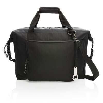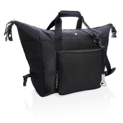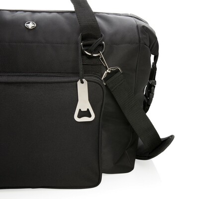 Torba termoizolacyjna, wykonana z poliestru 1680D i 600D, izolacja PEVA, pojemność 40 l, duża przegroda główna zmieści do 52 puszek 0,33 l lub 10 butelek 1,5 l, przegroda główna i przednia kieszeń na zamek błyskawiczny, specjalna konstrukcja z zapięciem z boku umożliwia łatwe przekształcenie torby w worek, otwieracz do butelek w komplecie, podwójnie wzmocnione uchwyty, regulowany pasek na ramię z możliwością odpięcia, ślad węglowy produktu: 6,59 kg CO2