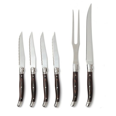 Zestaw do mięsa, nóż i widelec, wykonane z wysokiej jakości stali nierdzewnej, uchwyty z drewna pakka, w pudełku upominkowym