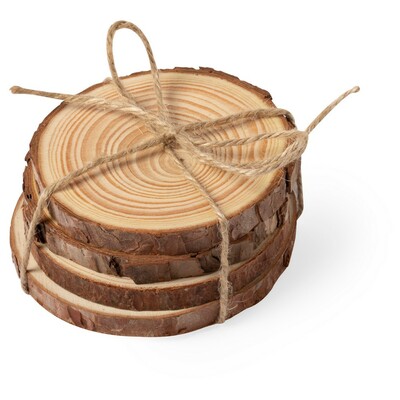 Zestaw 4 podkładek wykonanych z drewna sosnowego, średnica: 6-10 cm, grubość jednej podkładki: ok. 1 cm