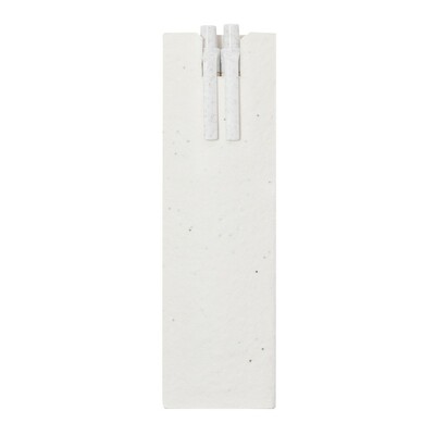 Zestaw piśmienniczy w etui z papieru z nasionami, długopis i „wieczny” ołówek ze specjalną wolnościerającą się końcówką, wkład długopisu w niebieskim kolorze, produkt wykonany ze zrecyklingowanych kartoników po mleku