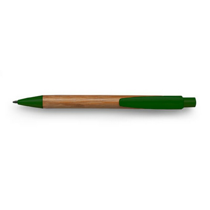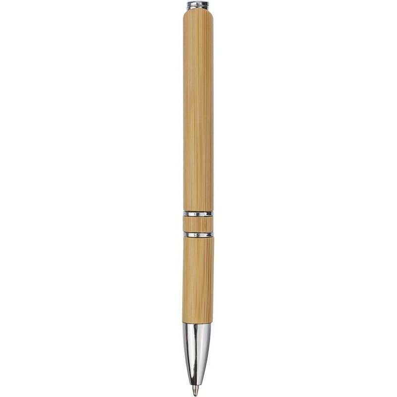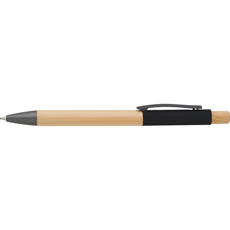 Długopis z chromowanymi detalami, klip ułatwiający zawieszanie na kieszeni albo okładce notatnika, wkład w czarnym kolorze, długość pisania ok. 800 m, produkt wykonany z bambusa,