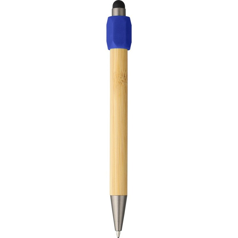 Długopis z trzonem wykonanym z bambusa, metalowe elementy, wkład w niebieskim kolorze, produkt wykonany z bambusa i metalu
