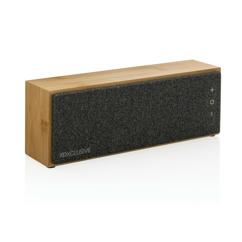 Głośnik bezprzewodowy 20W, BT 5.1, wykonany z naturalnego bambusa z certyfikatem FSC®, plastikowe elementy wykonane z ABS z recyklingu z certyfikatem RCS, zawartość materiału z