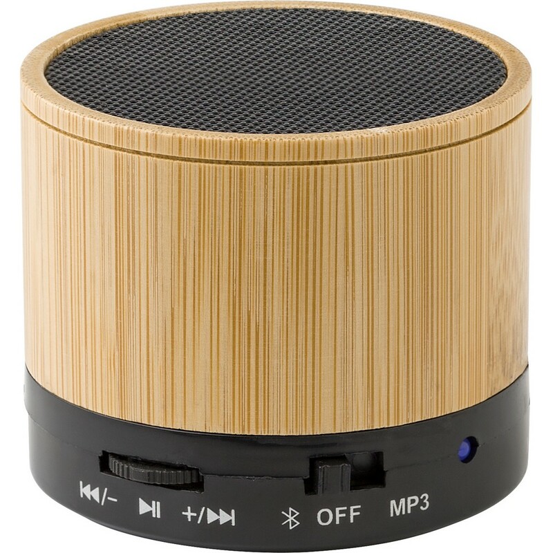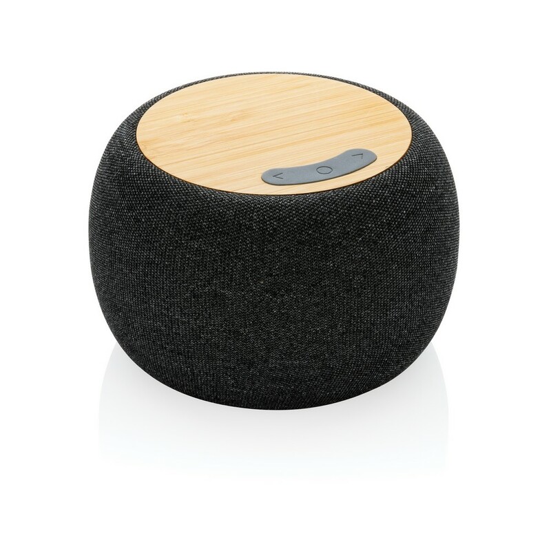 Głośnik bezprzewodowy 3W, BT 5.0, wykonany z bambusa, aluminium i tkaniny, wbudowany subwoofer poprawiający wydajność basów, akumulator o pojemności 400 mAh umożliwia odtwarzanie muzyki do