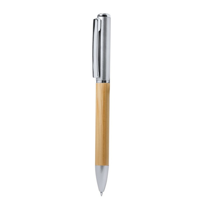 Długopis z trzonem wykonanym z bambusa, metalowe elementy, wkład w niebieskim kolorze, produkt wykonany z bambusa, metalu i plastiku
